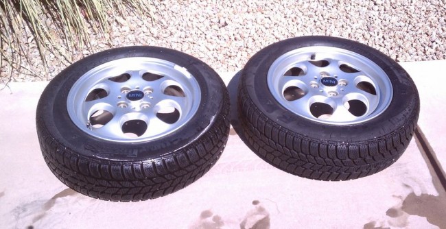 Which got Stella to thinking. Since she doesn’t live in Philly any more, and since she is a huge fan of the wheels that she has on her MINI now, it might be time to get rid of the snow tires. That are attached to the original 15" Holey.